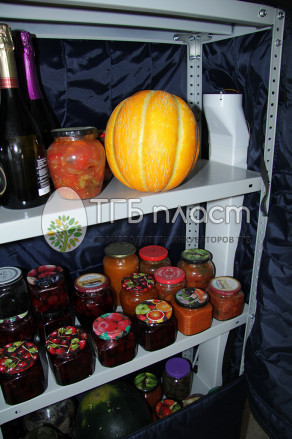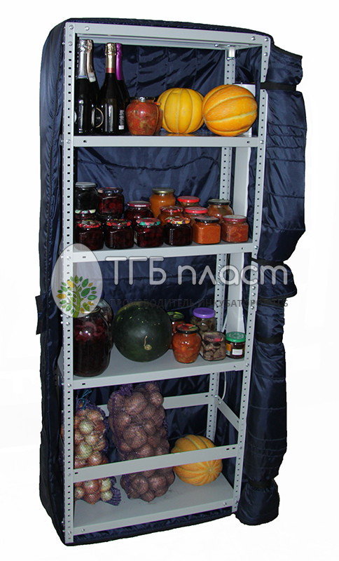 «Балконный погребок-стеллаж ТГБ-300» представляет собой сборно-разборную конструкцию в виде стеллажной системы с 4-мя полками, утепленной трехслойным материалом. Подходит для хранения овощей, фруктов, консервации, напитков в неотапливаемых помещениях при температуре окружающей среды -40…+5 °C. При этом внутри термошкафа поддерживается постоянная температура 0…+7 °C.